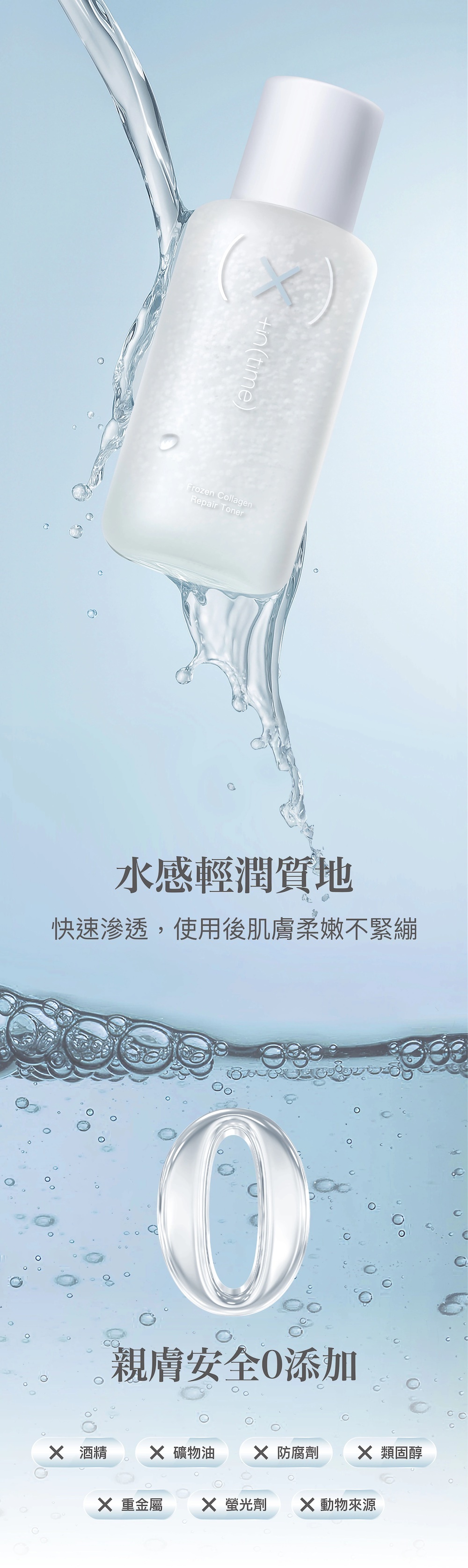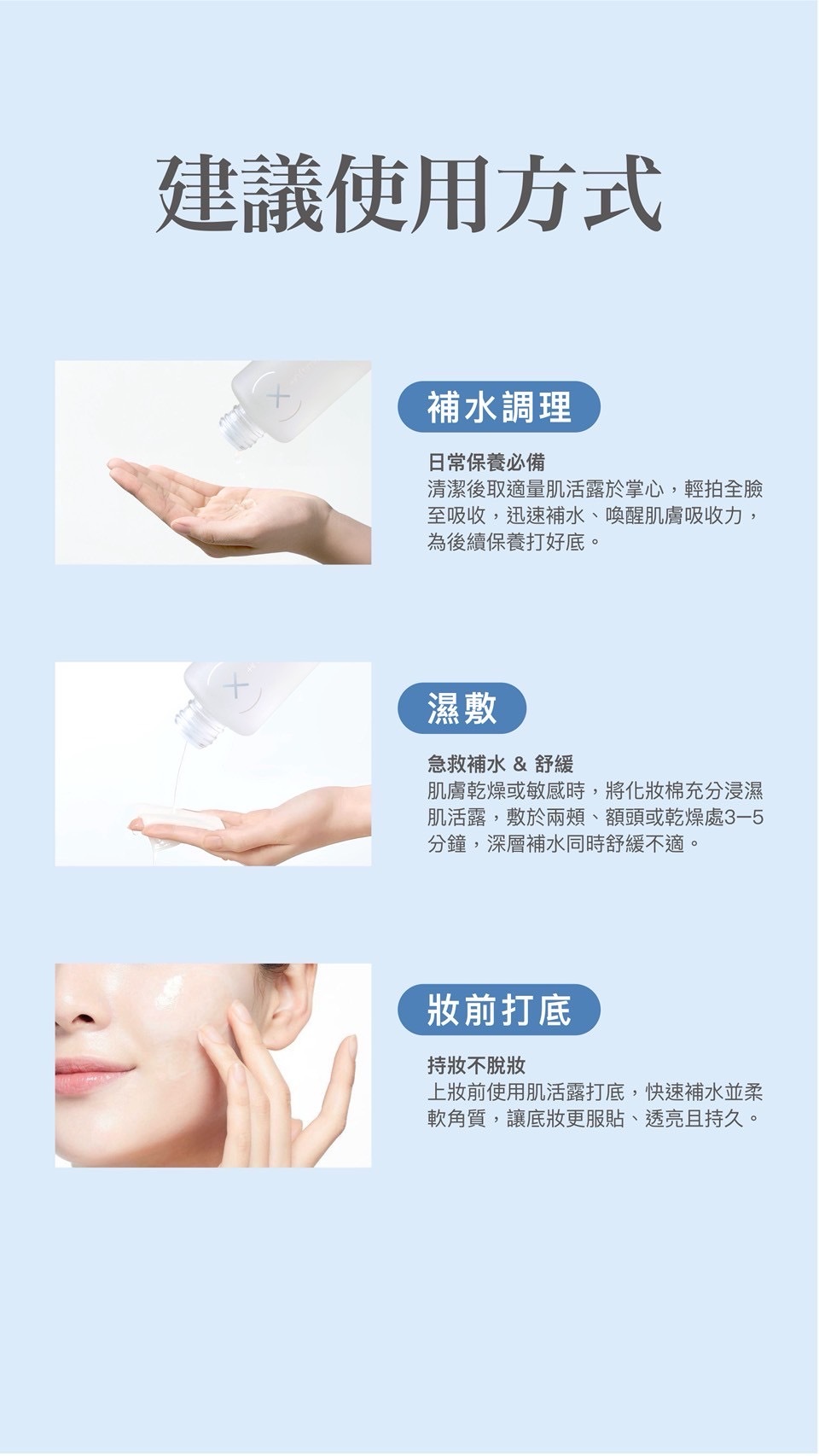 輕潤水感,滲透快,使用後肌膚柔嫩不緊繃。