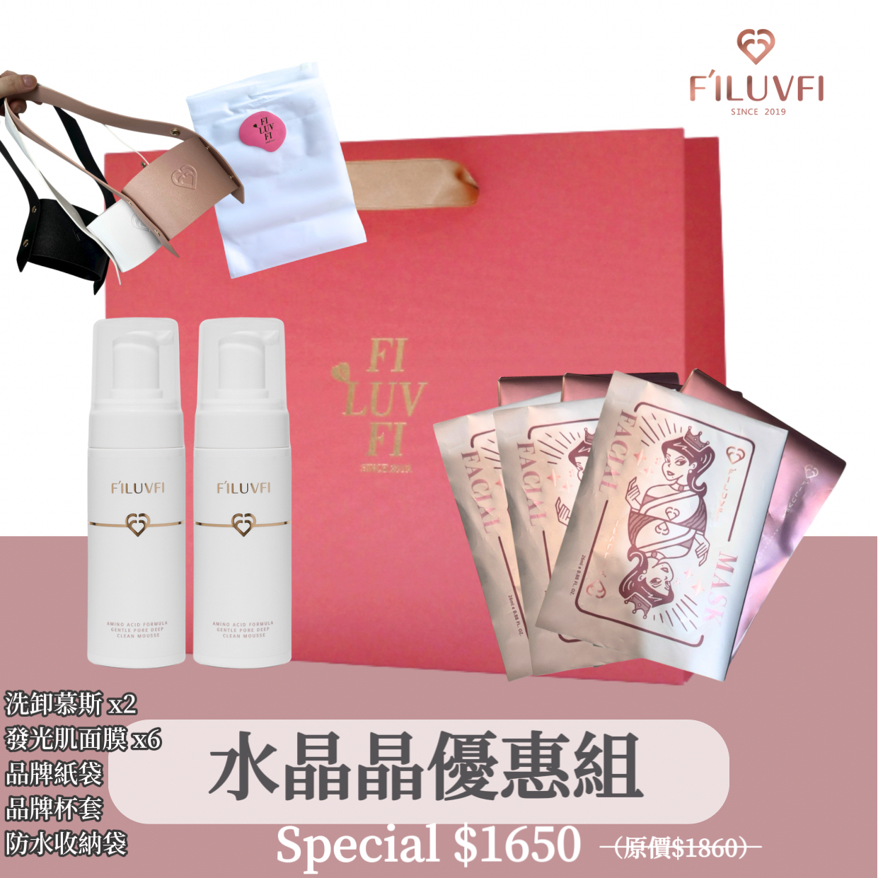 ▫️洗卸慕斯2瓶+面膜6片優惠組$1650(原價$1860)+贈🎁面膜3片原廠紙袋+防水收納袋+品牌質感杯套
